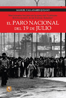 Tal como adelantamos ayer, publicamos hoy «El Paro Nacional del 19 de Julio» del profesor Manuel Valladares Quijano, historiador y docente de San Marcos, quien gentilmente ha cedido su libro para ponerlo al alcance de los lectores de El Reportero de la Historia en fecha tan propicia. Además de agradecerle en nombre de todos su gentileza, solo quiero agregar que esta publicación es la antesala de otras que, según me comenta, hará el profesor Valladares cuando lance su página personal pronto. Aquí les copio unas breves líneas que el profesor Valladares ha escrito para los lectores de «El Paro Nacional del 19 de Julio»:
